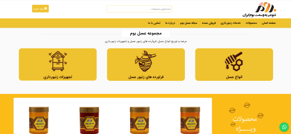 - عسل بوم قم؛ بیش از یک دهه تجربه در تولید و عرضه عسل طبیعی و مرغوب ایرانی، فرآورده های زنبورعسل و تجهیزات مدرن زنبورداری. تنوع بی نظیر، کیفیت تضمینی، همکاری با زنبورداران سراسر کشور.